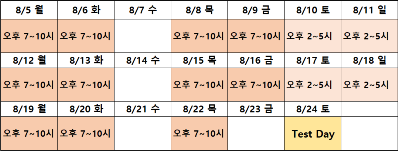 2) μμ λ±λ‘μ κ° λ μ§λ³λ‘ κ°λ₯νλ©°, κ° μΌμλ³λ‘ λͺ¨λ λ€λ₯Έ ν μ€νΈλ‘ ꡬμ±λ©λλ€.