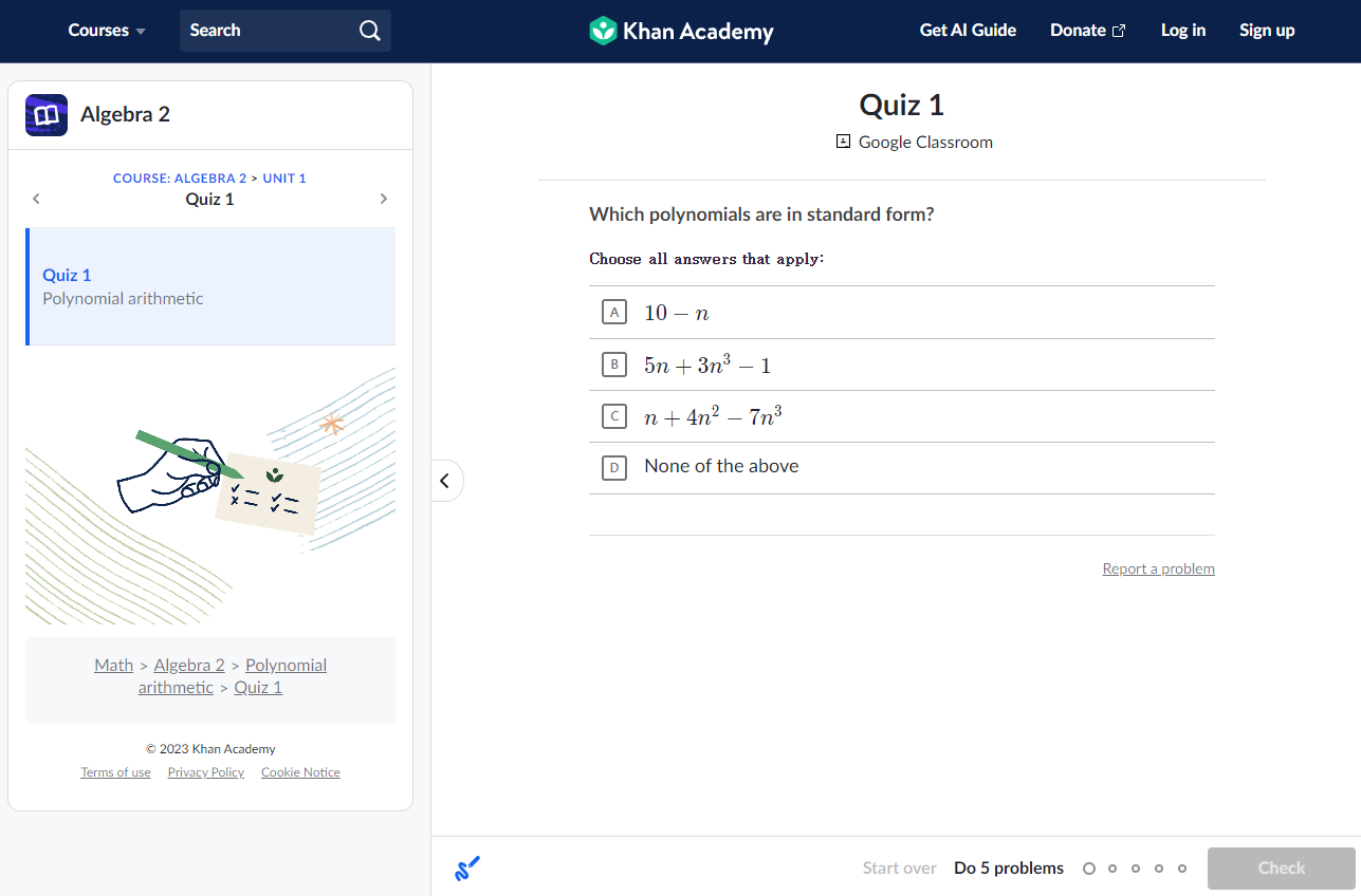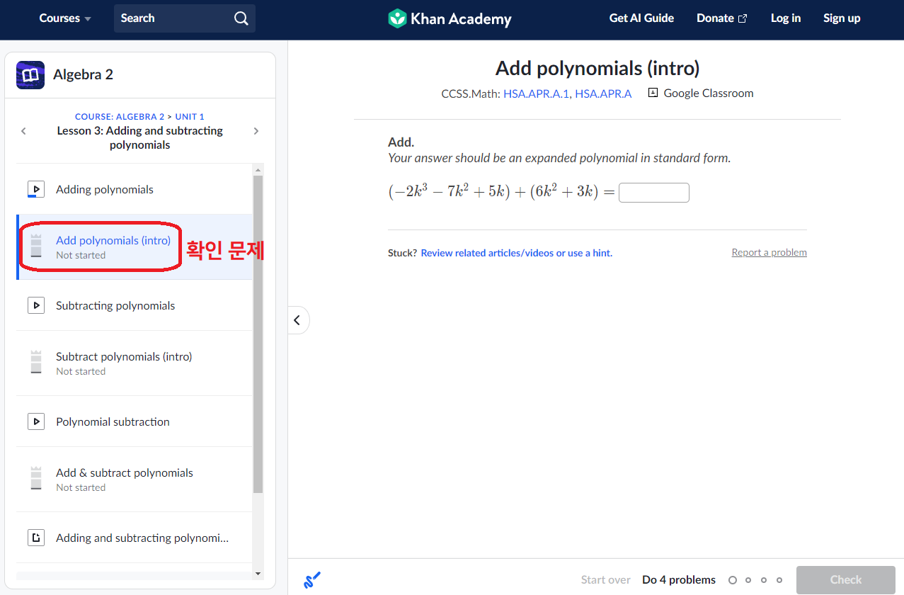 ์นธ ์์นด๋ฐ๋ฏธ Algebra 2 ๊ณผ์ ๊ตฌ์ฑ