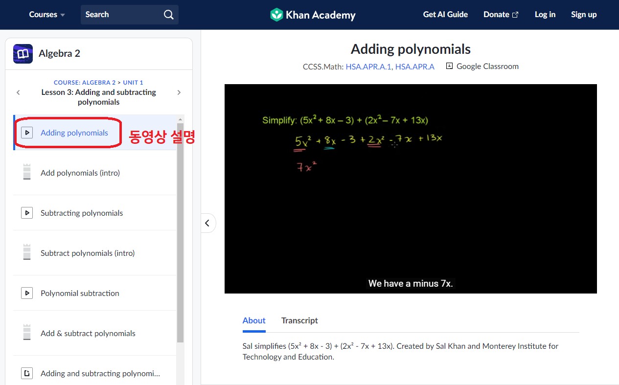 Algebra 2 ๊ณผ๋ชฉ์ ๊ณต๋ถํด๋ณด์.