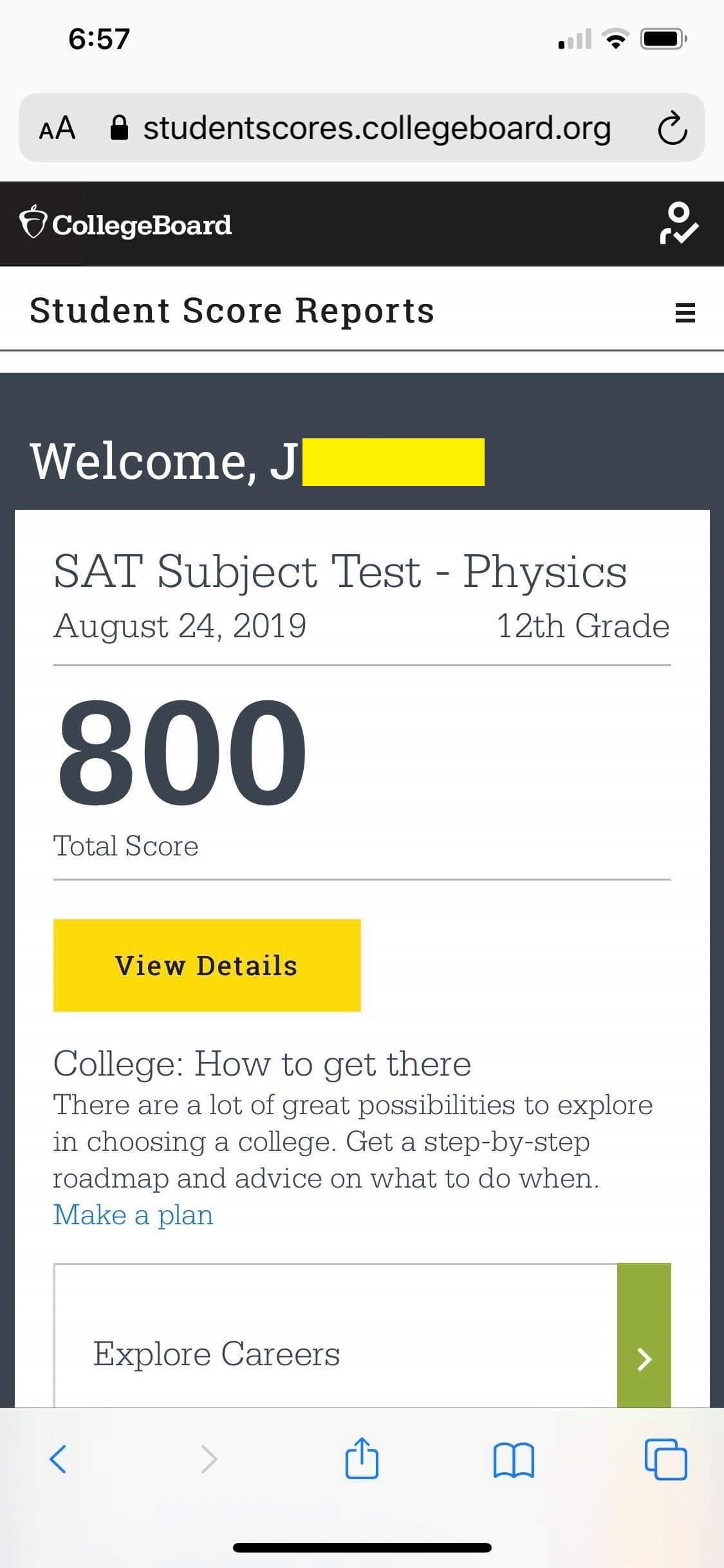 2019. 8. SAT Physics Final μμ μ λ£κ³ μ§λ 8μ 24μΌ SAT2 Physics μνμ μΉ νμμ΄ 800μ μ λ°μλ€κ³ μ°λ½μ μ£Όμμ΅λλ€.