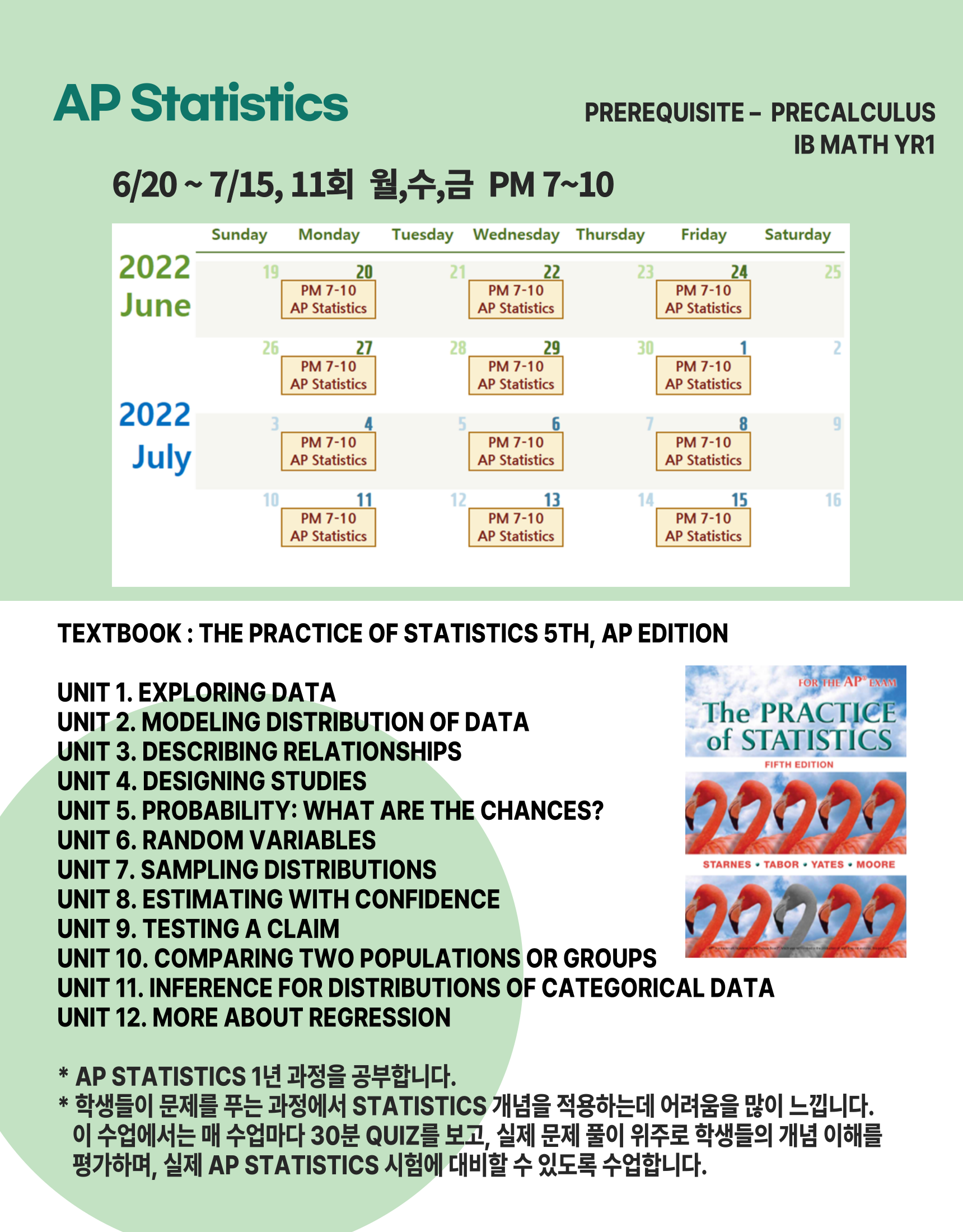 | 2022 AP Calculus, Statistics 3~5์ ์์ ์๊ฐํ (0) | 2022.02.26 |