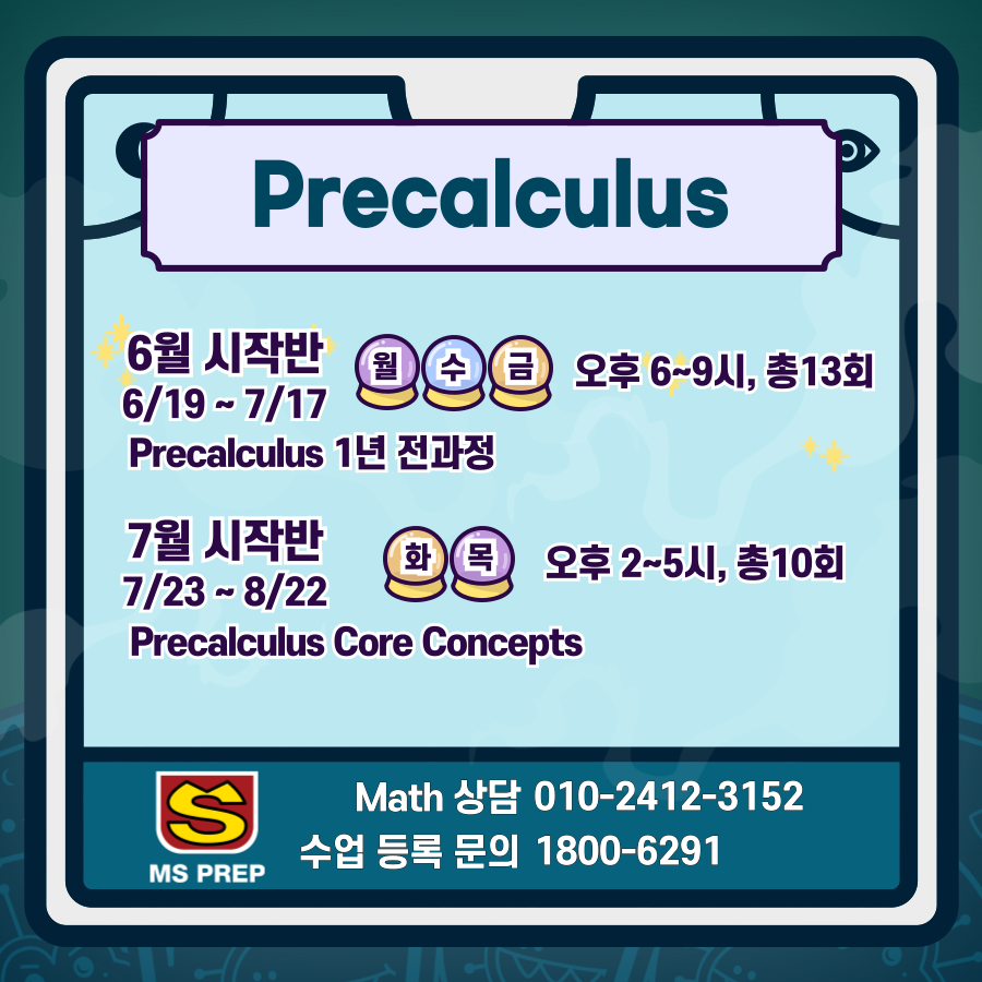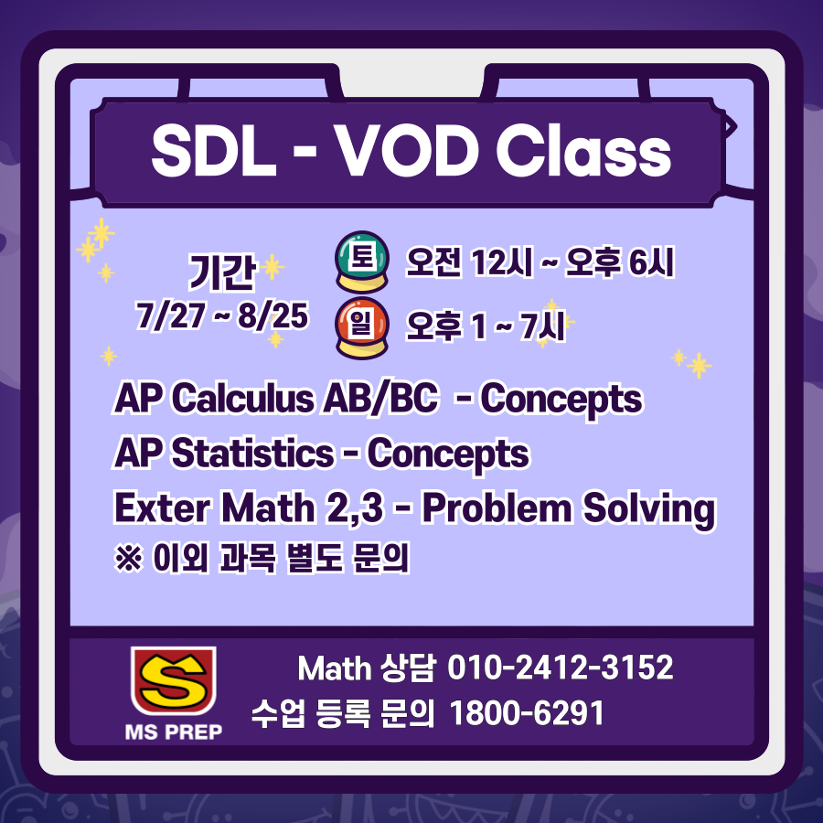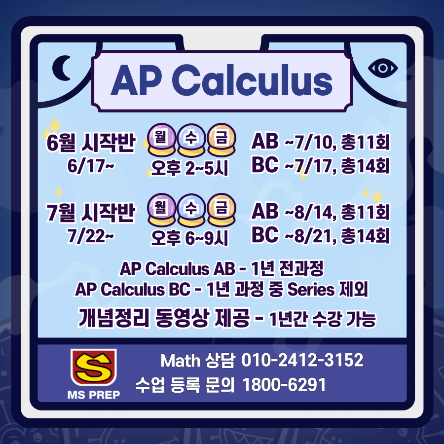 AP Calculus BC - 7 / 22 ~ 8 / 21 μ,μ,κΈ μ€ν 6 ~ 9μ, μ΄ 14ν