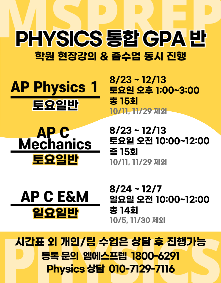 - ν μμΌ: AP Physics 1 ν΅ν©λ°, AP Physics C Mechanics ν΅ν©λ°